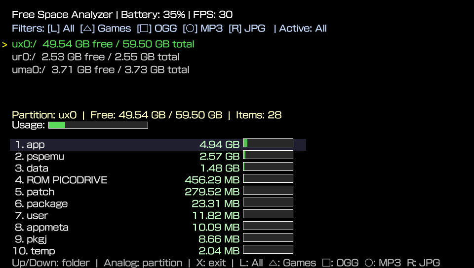 In short: it’s a disk usage analyzer for PS Vita (similar to tools like WinDirStat on PC), helping you free space and better understand where your storage is going.